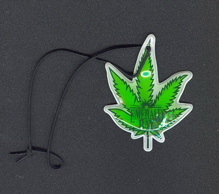A marijuana leaf trinket with the text “Emerald Bay”.
